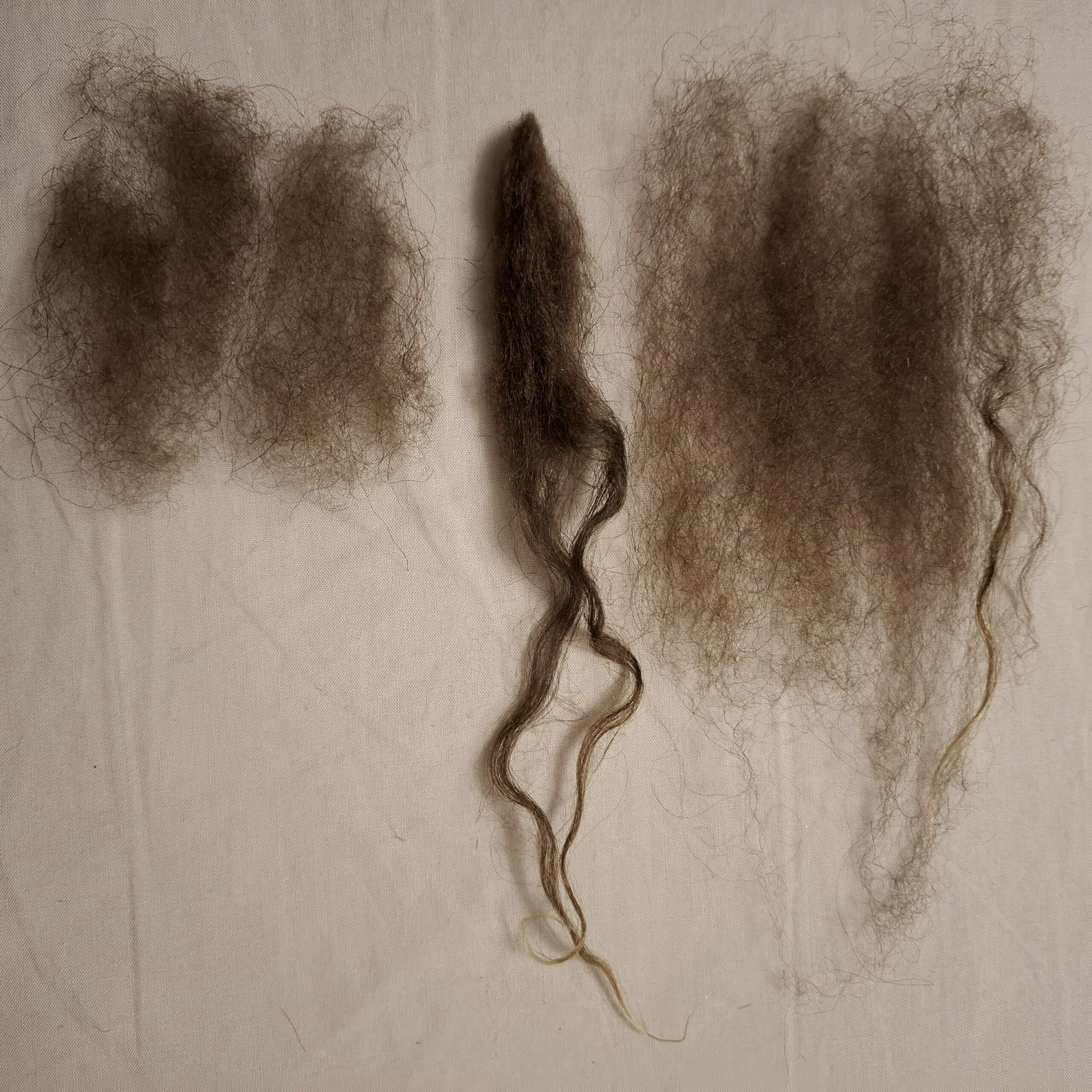 A lock of icelandic sheep fleece,, between þel (on the left) and tog (on the right)