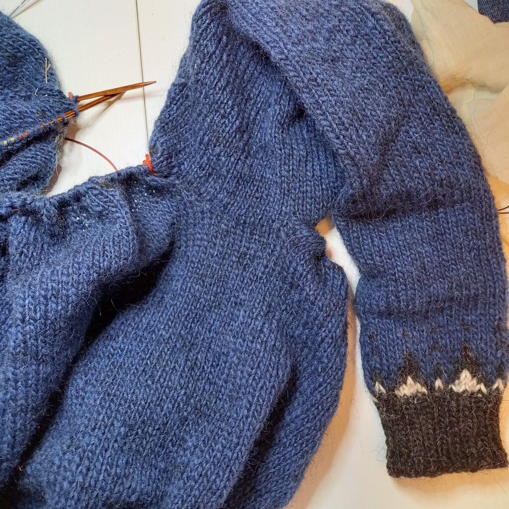 This is a different approach from how we work them in other countries, where we knit flat pieces (front, back, sleeves) then sew them together. The final shape may be more adjusted, more precisely shaped, but the seams create some rigidity.