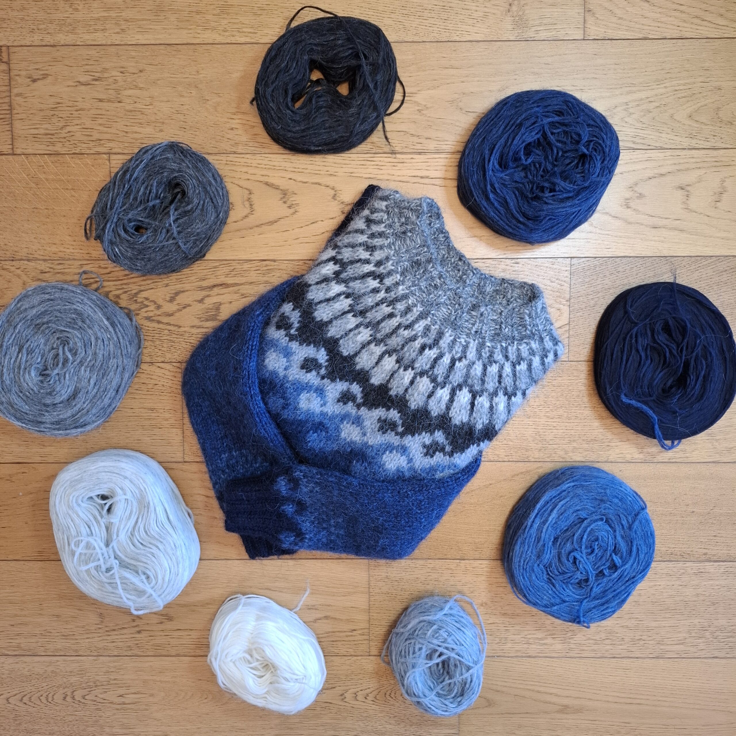 The yarn used is Icelandic plötulopi, you can read more about this yarn here.